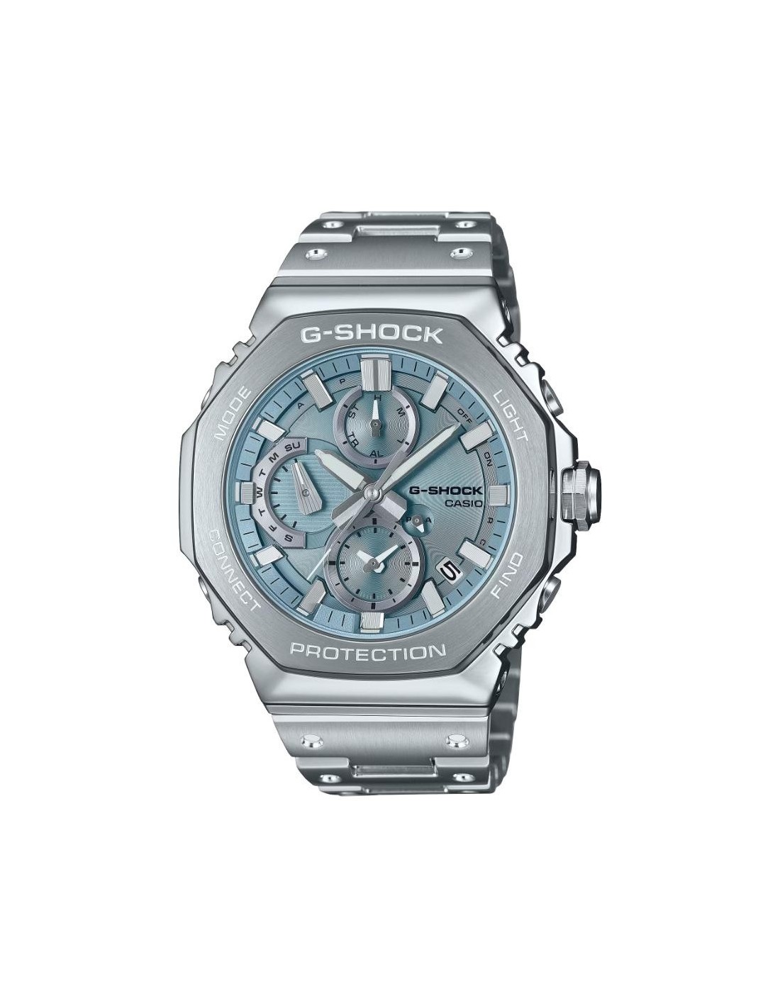 Este modelo rinde homenaje al legado de la marca mediante su icónico bisel octogonal y una correa con hoyuelos inspirada en el diseño original de 1983, ahora reinterpretados con una construcción completamente metálica en caja, bisel y correa. Entre el bisel y la caja, componentes de resina fina actúan como amortiguadores para garantizar la reconocida resistencia a los golpes sin renunciar a un acabado plenamente metálico.