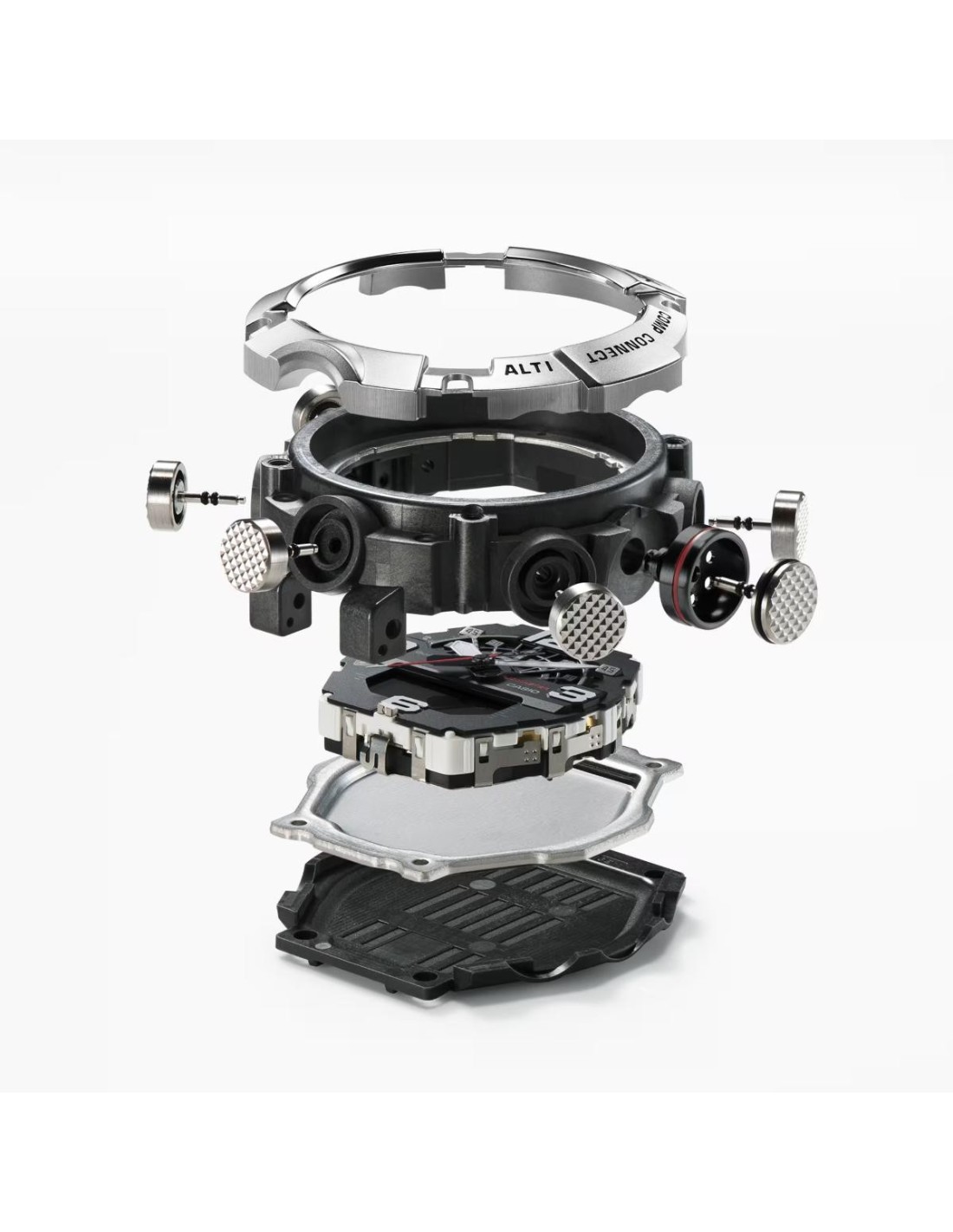 El GG-B100XM-1ADR cuenta con un bisel de acero inoxidable plateado con acabado pulido, que ofrece gran resistencia a los arañazos, protege contra el barro y el polvo, y añade una sutil textura mate que minimiza los reflejos. Por su parte, el bisel del GG-B100XMB-1ADR está chapado en iones de color negro con acabado espejo, combinando extraordinaria resistencia a los arañazos con un brillo refinado.