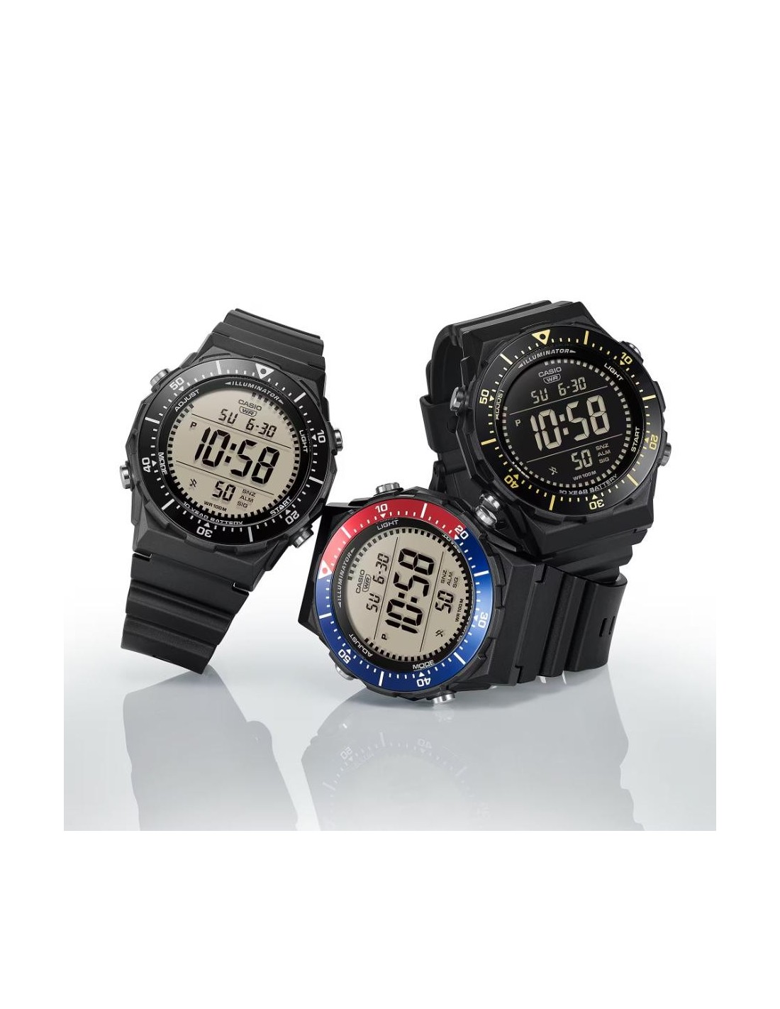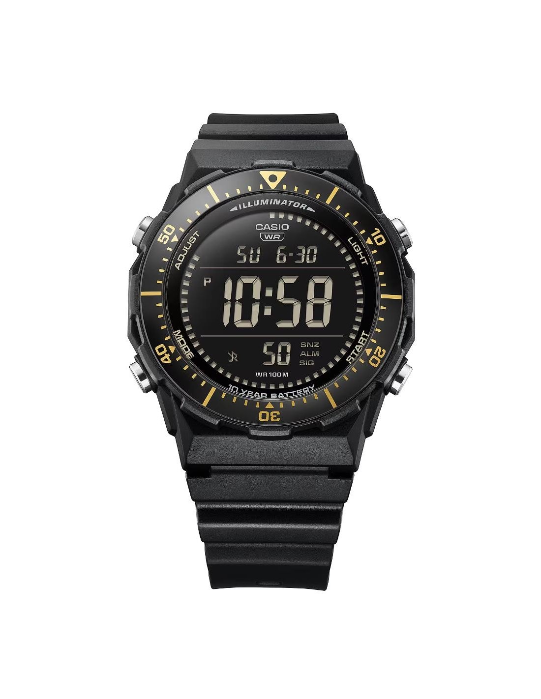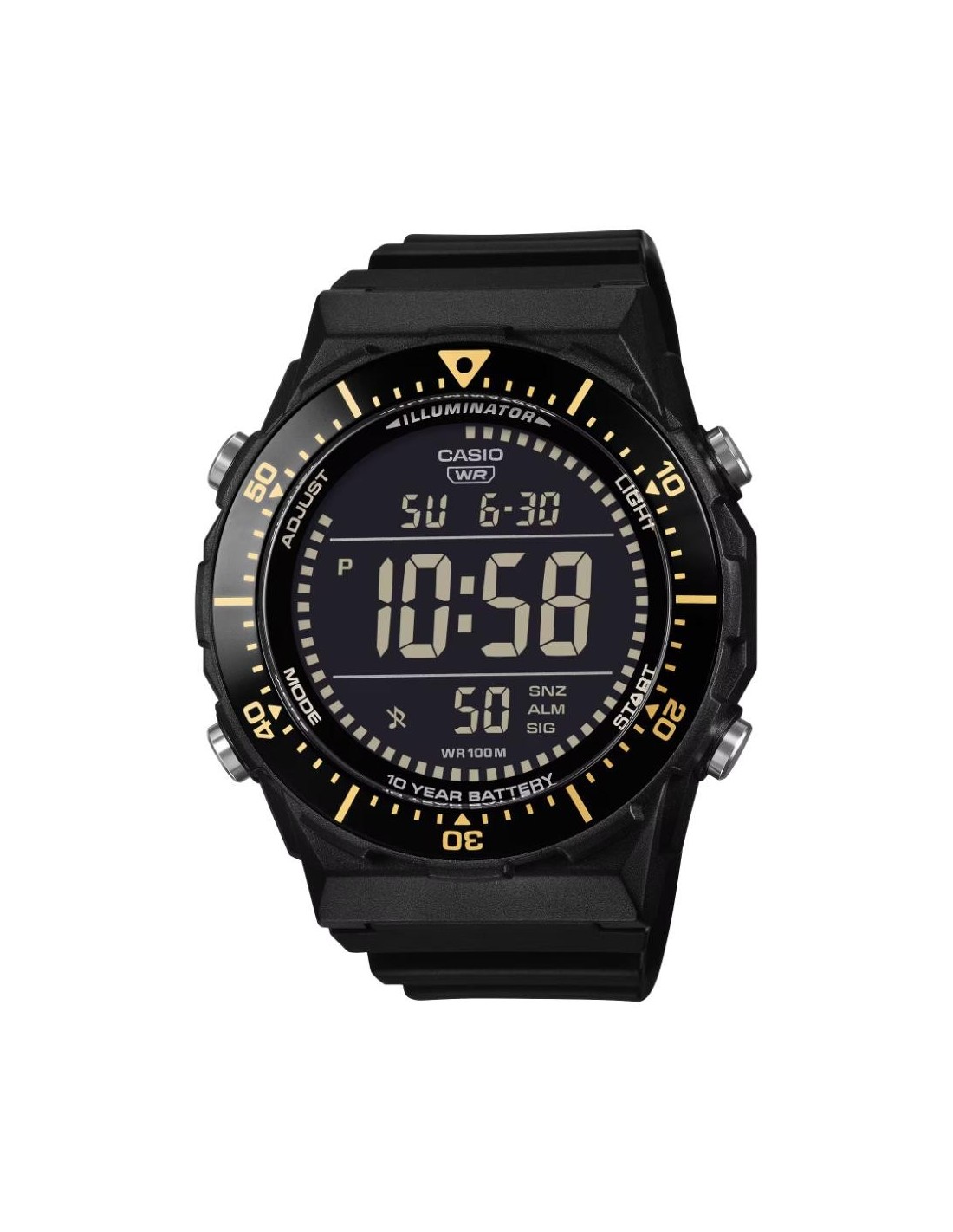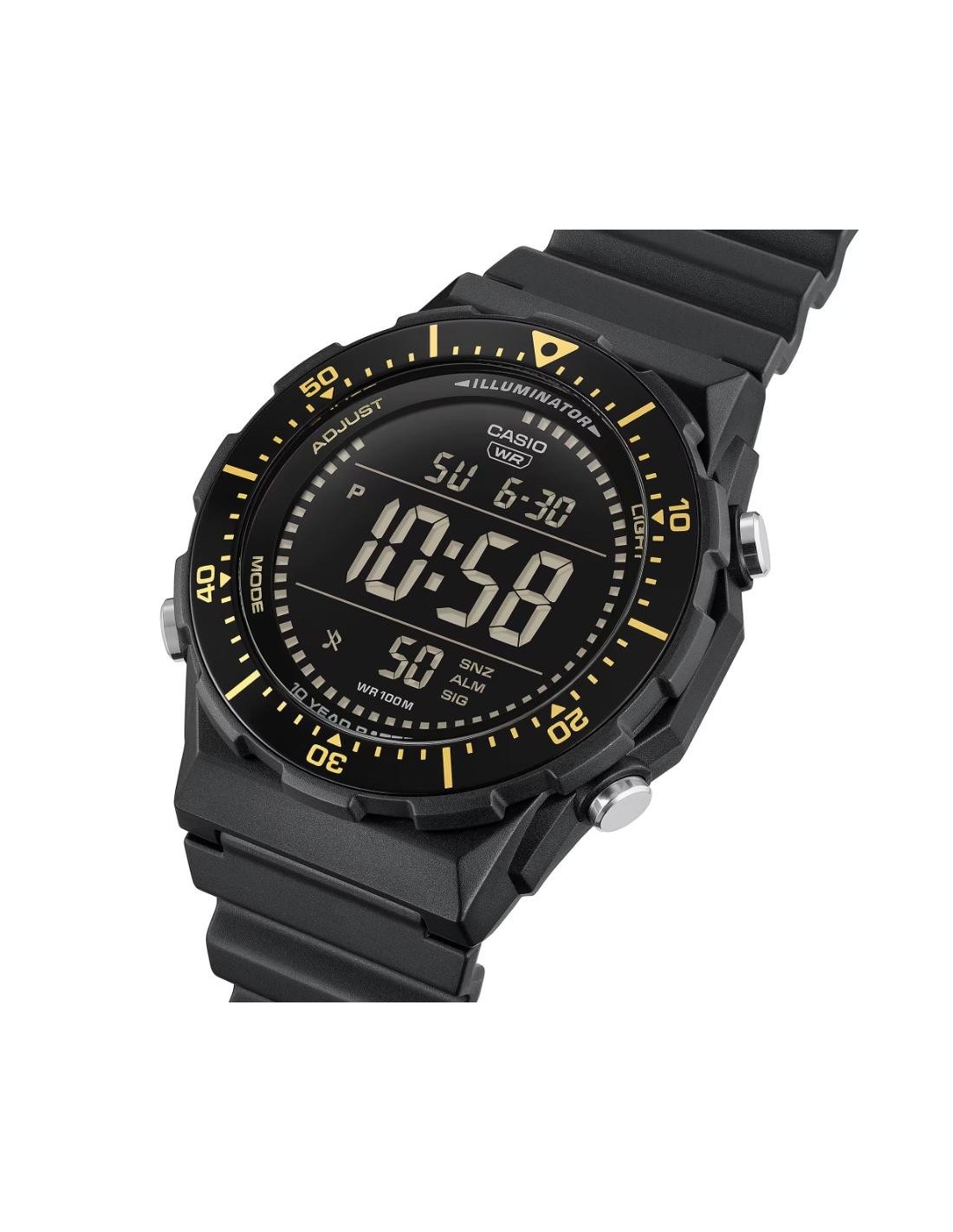 Multifunctional digital watch with a large, easy-to-read display and rotating bezel, designed for optimal performance in the world of sport.