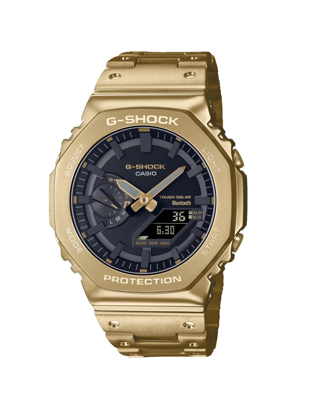 The high-quality production process of the analogue-digital watch allows for a flat design and yet offers a wide range of important functions as well as a very high level of wearing comfort.As a connected watch, the watch is paired with a smartphone via Bluetooth®. Simply download the CASIO WATCHES app to obtain an accurate time stamp or operate other functions. The GM-B2100 series is equipped with environmentally friendly Tough Solar technology, which powers all functions such as the LED illumination, alarm or countdown timer. It not only convinces with its high-quality design and workmanship, but also with its exceptional user-friendliness.