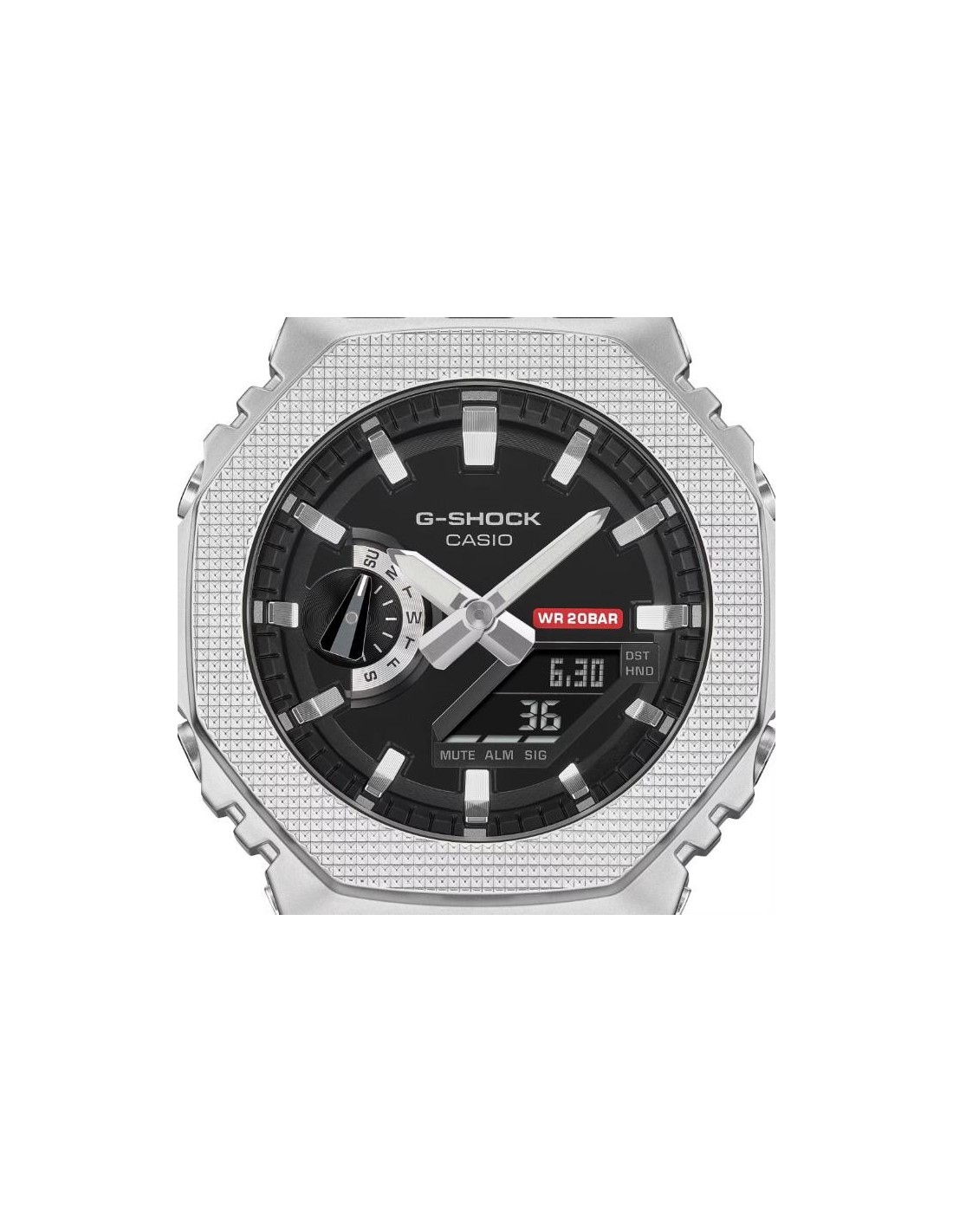 The iconic GM-5600 digital model, with its unmistakable square shape and metal bezel, together with the GM-2100 analogue-digital design, adopt an achromatic palette that enhances the elegance of simplicity and pure functionality.