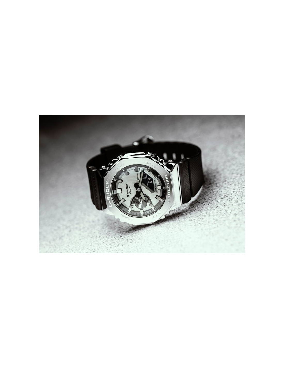 Stainless steel case reinforced with carbon fibre: The carbon fibre incorporated in the resin case increases the robustness of the watch and provides better comfort.