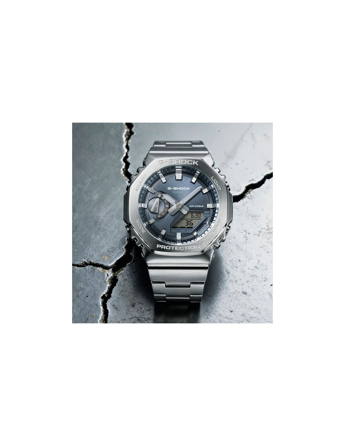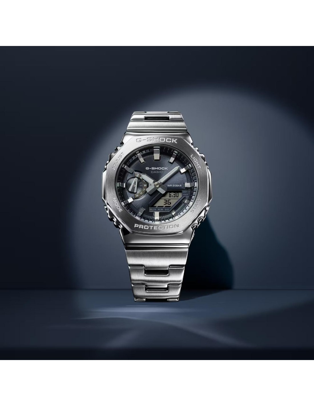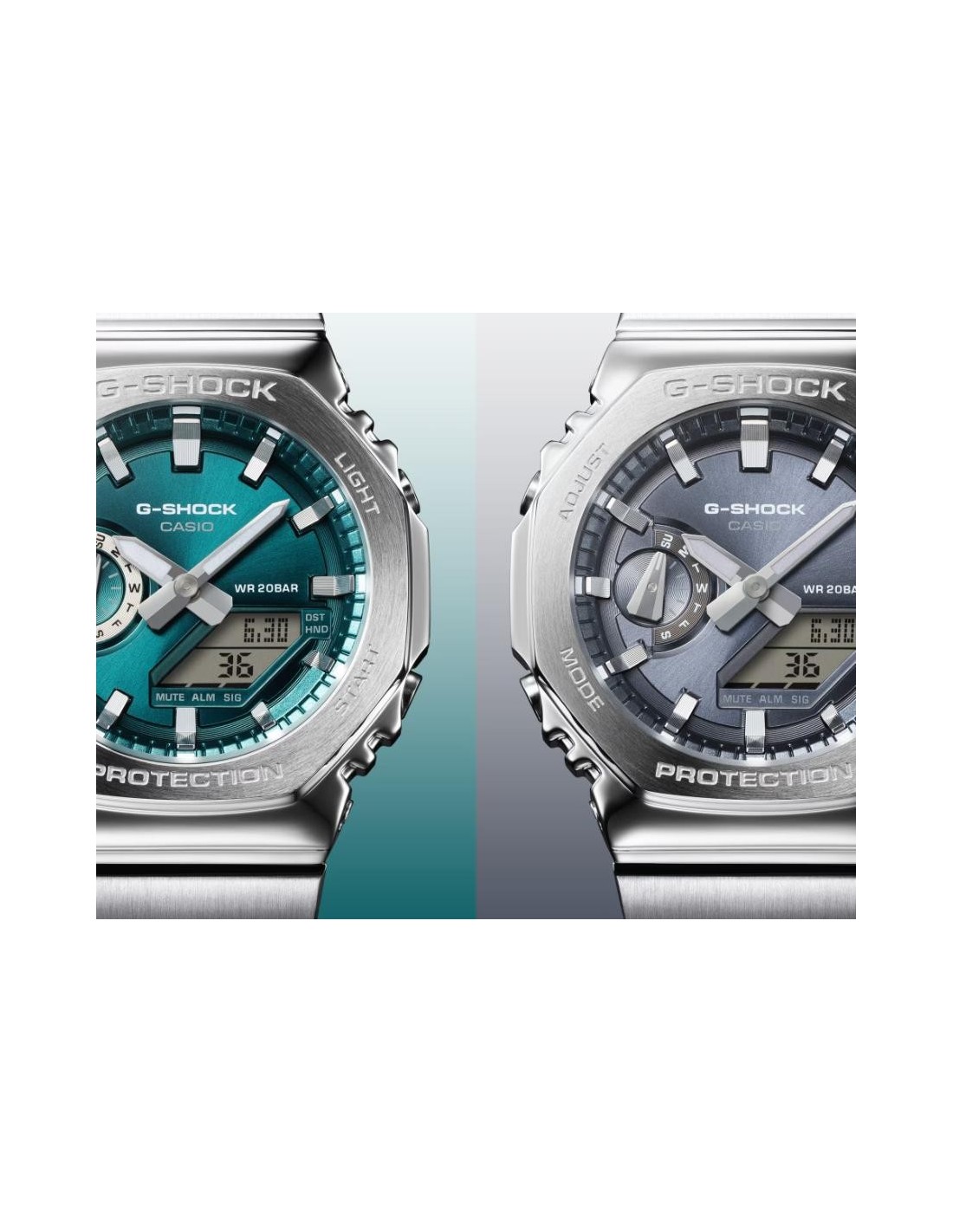 Introducing the GM-2110D: a G-STEEL with analog-digital combination based on the GA-2100, now with a stylish metal bezel and strap.