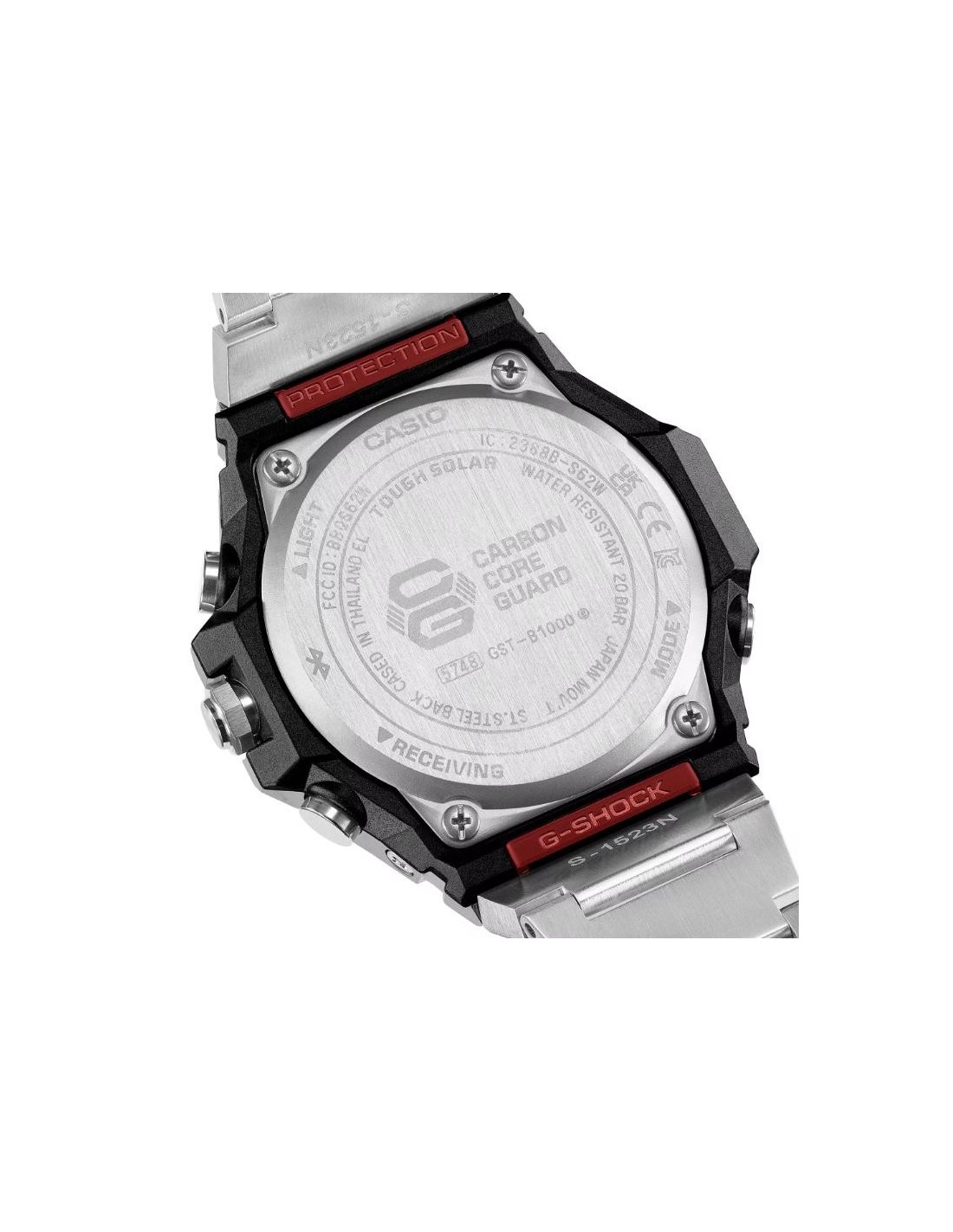 Inspired by the first G-SHOCK, it incorporates details from the DW-5000C, such as the shape of the bezel and the characteristic brick pattern. The colours of the GST-B1000D-1AJF model evoke the original values: red for passion, blue for water resistance and yellow for impact resistance.