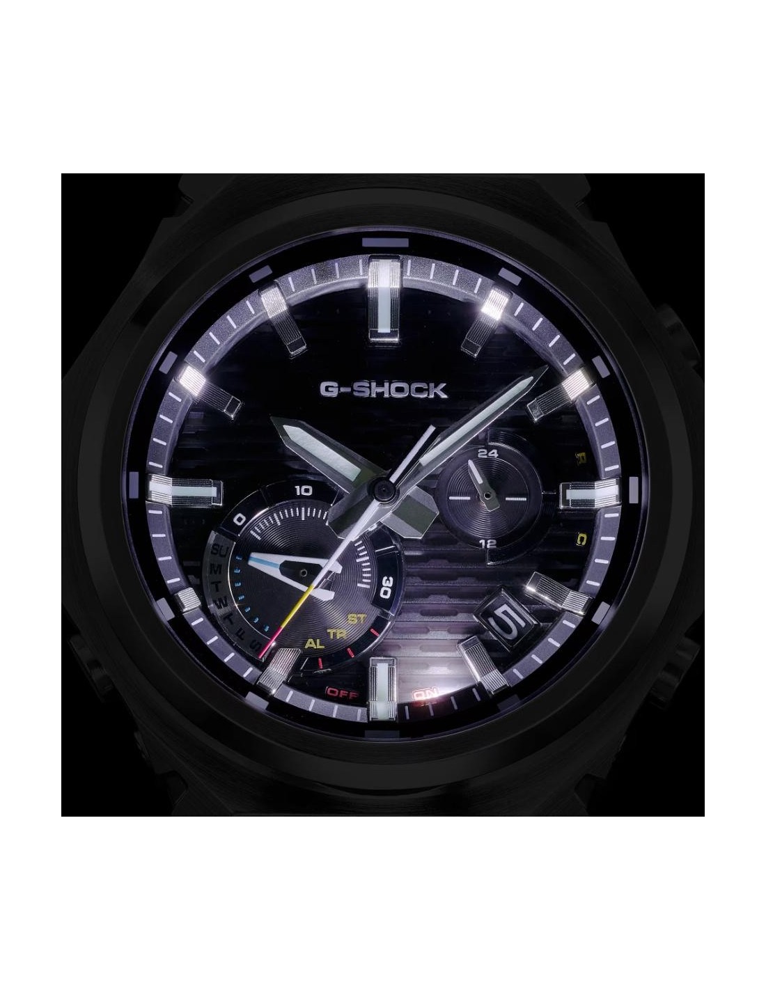 Designed to last, it combines a protective metal bezel, carbon-reinforced resin case and shock-absorbing urethane components. Its compact module and bonded glass allow for a slimmer and lighter profile without sacrificing strength.