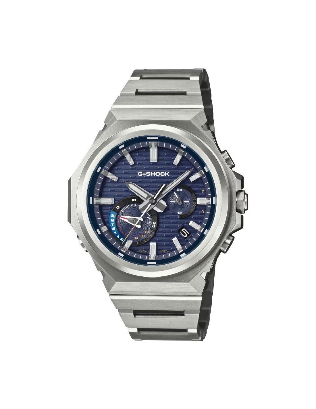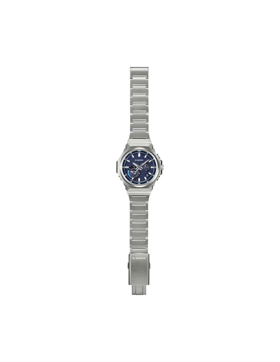 The GST-B1000D reinterprets the essence of G-SHOCK with a robust construction, refined finishes and a clean design without a logo on the bezel. Its three metallic textures — vertical scratch, circular scratch and mirror polish — lend a sophisticated presence that changes with the light. The solid stainless steel strap and clasp complete an elegant and versatile look for any occasion.