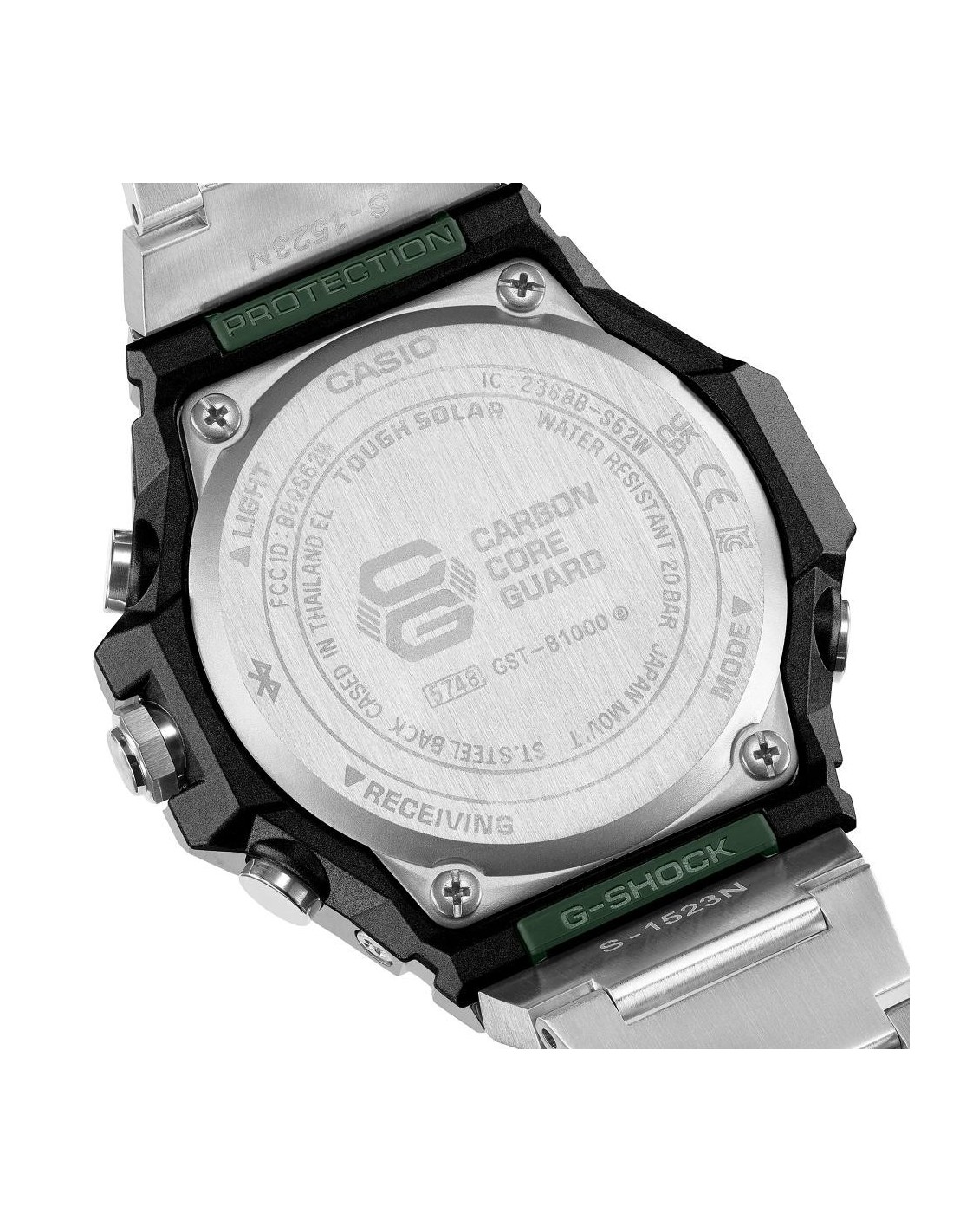 Designed to last, it combines a protective metal bezel, carbon-reinforced resin case and shock-absorbing urethane components. Its compact module and bonded glass allow for a slimmer and lighter profile without sacrificing strength.