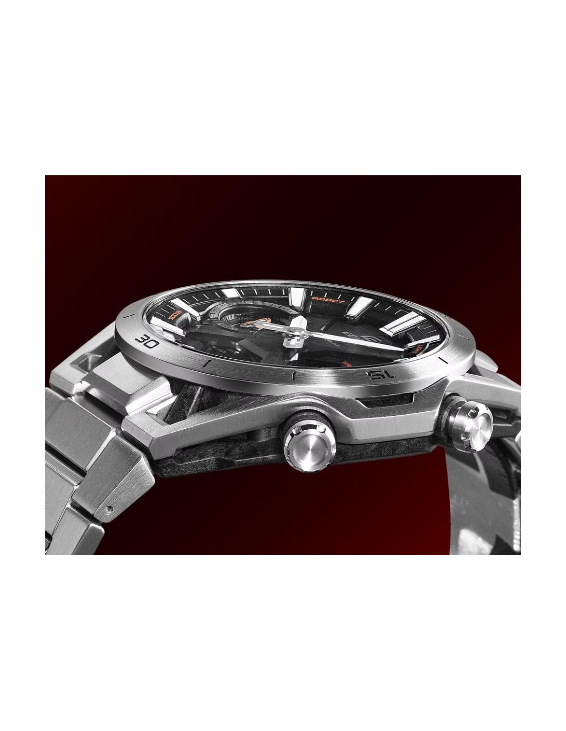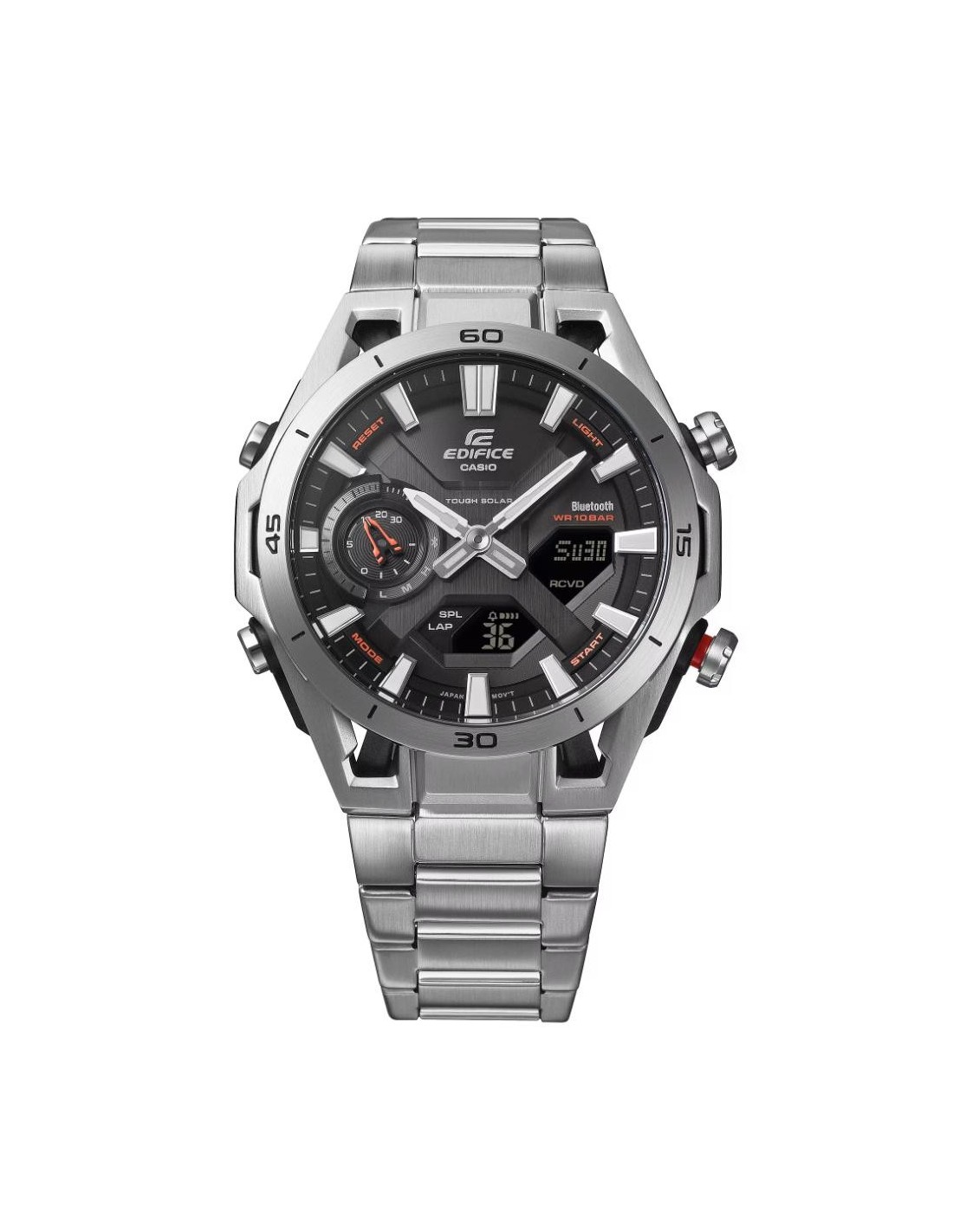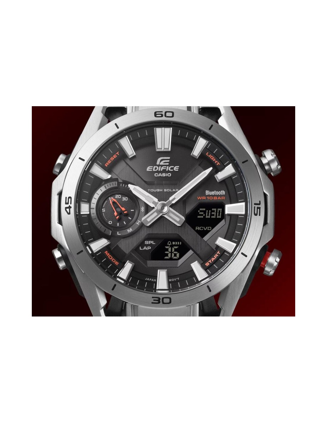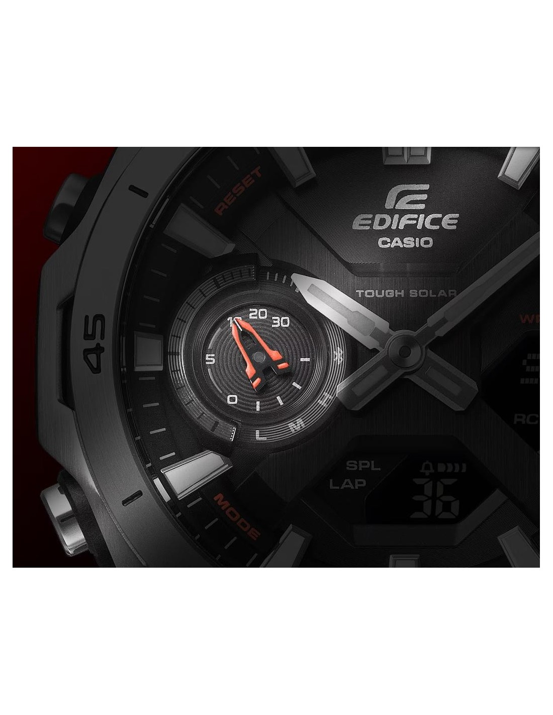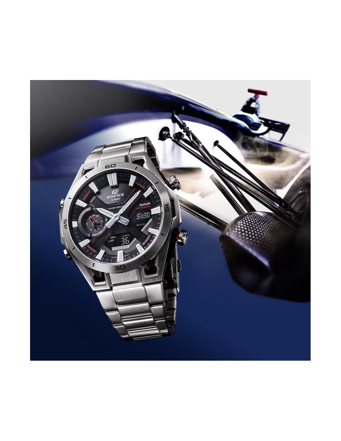 Welcome to the EDIFICE universe, where wristwatches meet motor racing engineering. The EDIFICE ECB-2300 SOSPENSIONE combines advanced functionality and sophisticated design, capturing the pure essence of motor sports and transforming it into a high-performance piece for the wrist.