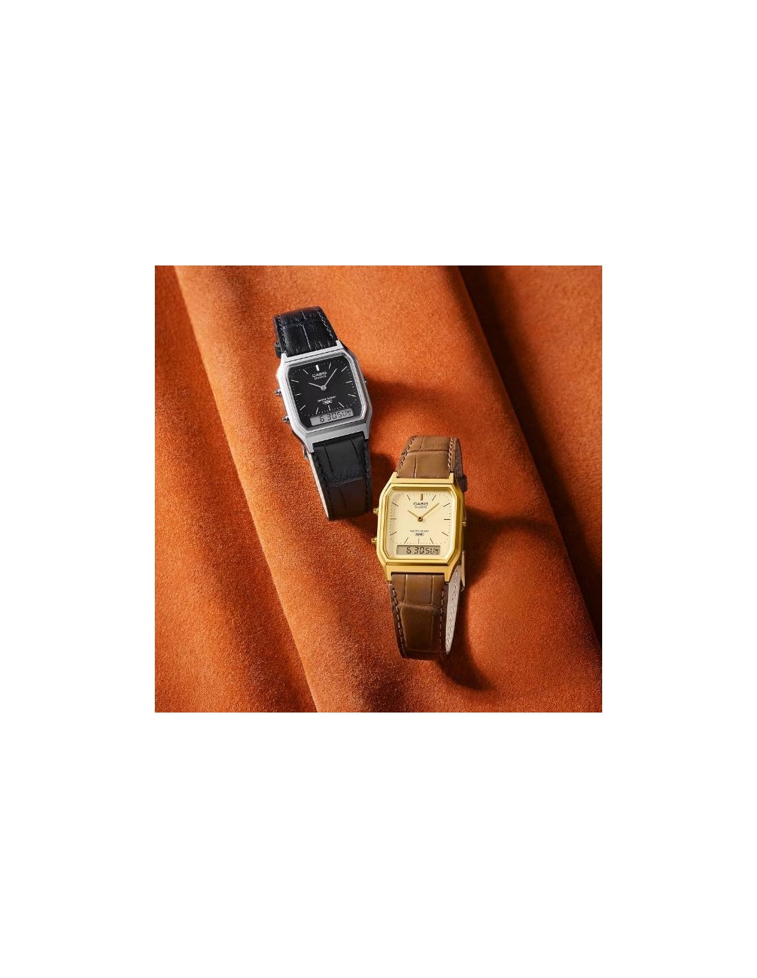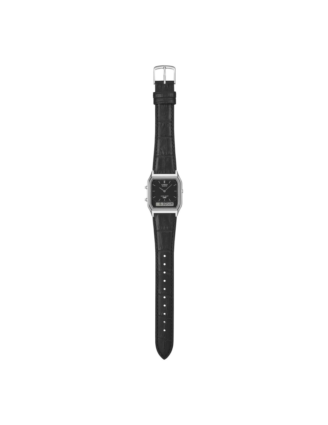 Inspired by the iconic AQ-230 model, this watch combines a sophisticated look with practical features for your everyday life: water resistance, stopwatch, alarm and more tools to make your routine easier. Its classic textured strap design adds a timeless touch that suits both casual and formal styles.
